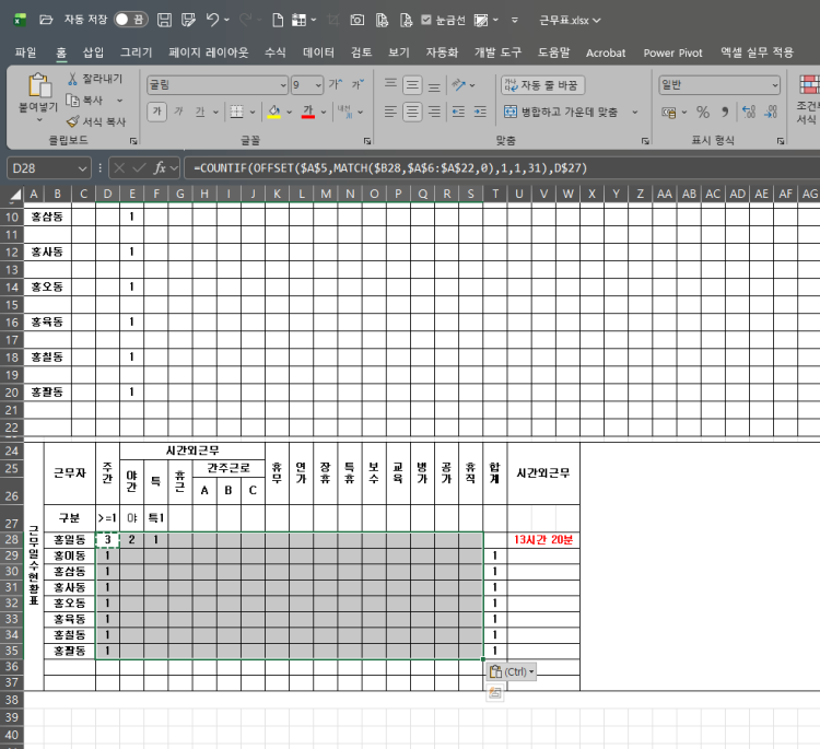 엑셀 countif 제외 하고 싶은 행 엑셀 countif 로 특정 숫자의 갯수를 파악하는 수식을 사용하고 있는데